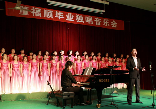 董福顺2011年以优异成绩考入 艺术学院。入校后,师从欧阳时来副教授学习声乐,在音乐表演、演唱技巧和艺术修养等方面取得了较大的进步,多次获得校内外各类奖项,此次的音乐会也是为了感谢母校,感谢母校的所有老师尤其是其专业老师的辛勤培养。正是有了母校老师的悉心指导,才会有如今的自己。