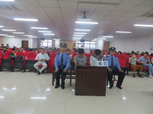 6月11日晚,政法学院在综合楼六楼举办“模拟法庭”活动。政法学院团委宋品品老师、实验中心陈浩老师和全体法学专业学生参加了此次活动。
