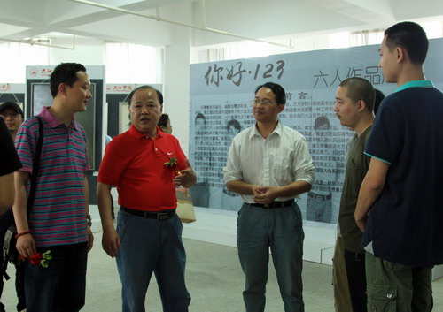 近日,由艺术学院主办的“你好,123”六人作品展在逸夫图书馆展厅举行。吴维勇院长、王春生书记、虞斌副院长、沈杨副书记、汤艳科长和龚晓天、余晓庭、李帅、李昆、吴小亮、王祖刚等领导、老师出席了开幕式。