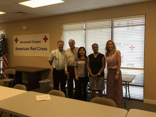 美国当地时间6月15日下午,在孔子学院学生、美国红十字会萨凡纳分会自愿者Behrooz Kalantari博士的引荐下,孔子学院中方院长罗其娟和汉语教师张春子走访了美国红十字会萨凡纳分会机构。受到萨凡纳红十字会机构负责人Esther Sheppard女士的热情接待。