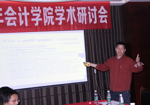 会上,美国肯塔基大学谢宏教授就“An Overview of Archival Auditing Research”做了精彩的主题报告。会计学院教师尹林辉、袁德利、陈秋云、乐长征、张永杰等,分别就社会诚信、终极所有权结构、混合所有制、投资者关系管理、中国出口转型、市场风险、公司特征、股权结构、养老保险基金联网审计等话题做了报告,与会代表踊跃交流,纷纷发表意见并提出建议。