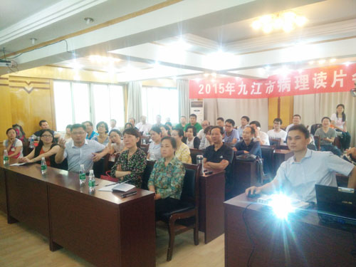 5日,在办公楼四楼会议室举行的九江市首届病理读片会上,五家省市共建的医院专家及九江地区的各家单位代表共计60余人参加了研讨。
