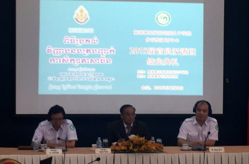 7月28日,柬埔寨王家研究院孔子学院参议院汉语中心2015届官员汉语班结业典礼在参议院北会议厅顺利举行。柬埔寨参议院秘书局副秘书长隆才阁下(Loak Chhay),柬埔寨王家研究院孔子学院院长谢莫尼勒阁下(Chea Munyrith)、中方院长帅式毅、来自 的公派教师张文峰及参议院汉语中心2015届官员汉语班学员约80余人参加了结业典礼。