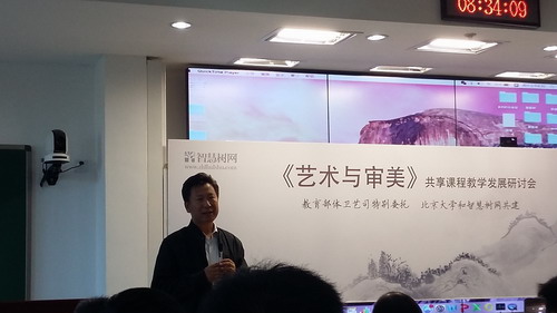 9月12日,由东西部高校共享课程联盟和智慧树网共同组织的《艺术与审美》共享课程教学发展研讨会在北京大学召开。教育部体卫司司长王登峰到会并讲话,北京大学副教务长方新贵、北京大学艺术学院名誉院长叶朗、智慧树网总裁葛新、北京大学艺术学院副院长彭锋等参与了研讨,全国100多所高校教务处、艺术学院相关人员参会。受学校教师发展中心委派,艺术学院副院长欧阳时来、实验室主任於勤参加了此次研讨会。
