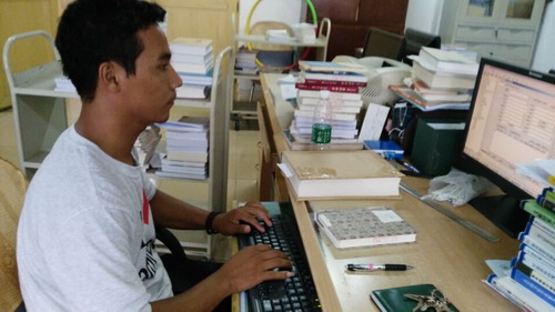 Keath Piseth是柬埔寨暹粒省青少年文化交流访问团中的一员,在柬埔寨孔子学院做志愿者,协助柬埔寨孔子学院图书馆中文图书的文献编目加工工作。他此行来