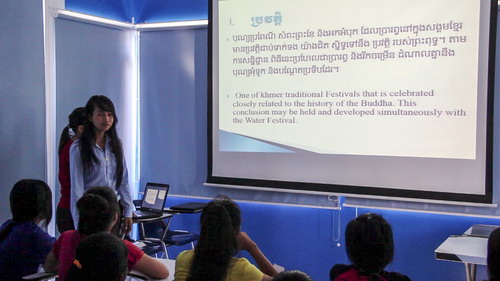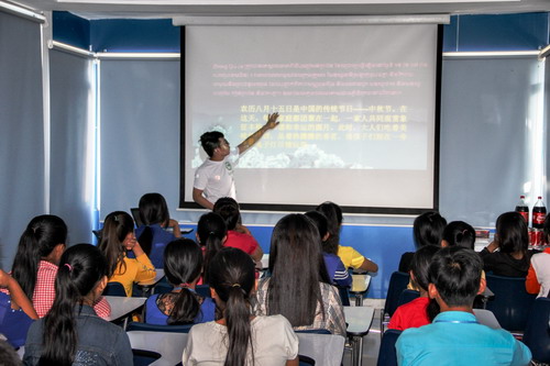 青年联合会的卜思丽通过PPT展示介绍了柬埔寨传统节日送水节,并将之与中秋节对比,让学员们深入地体会到中柬文化的差异与相似之处,也更加深刻地了解到中秋节在中国传统文化中的地位和意义。
