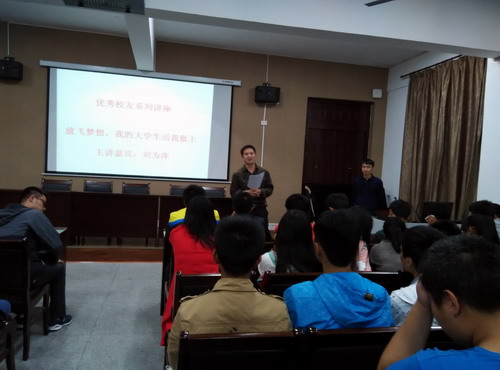 报告开始前,谢宝华主任为大家详细介绍了刘为萍的求学、科研和工作经历,他希望同学们以学长、校友为榜样,加强学习交流,树立目标,成就未来。