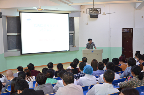 10月14日下午,临床医学院/附属医院在一教111教室举行《临床医学专业认证知识》讲座。院领导班子,中层干部、教研室主任、教学秘书,科教科、教学管理科、学生科、技能中心、办公室全体人员,各教研室实验室专职带教老师及附属171医院相关人员等150余人参加。活动由临床医学院/附属医院党委书记张南华主持。