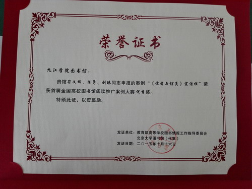 我校荣获全国高校图书馆阅读推广案例大赛优秀奖
