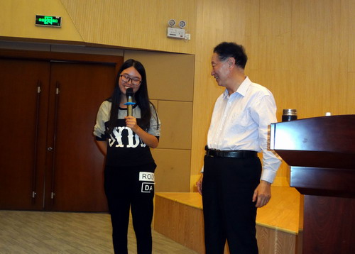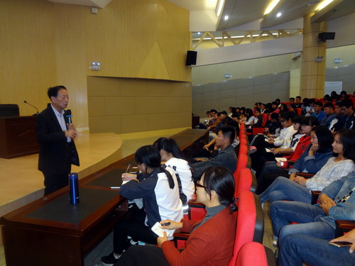 陈教授的讲座精彩纷呈,极具特色,始终与同学们互动,把同学们的热情激发出来,台下掌声不断。在整个演讲过程中,陈忠教授不断鼓励新生要树立自信心,把读大学当做人生的新起点,珍惜大好时光,充分利用学校的学习资源,大胆向老师请教、交流探讨,增长见识,增长技能。70多岁高龄的陈忠教授始终坚持站着为同学们作了两个多小时的讲座,他的精神令人感动与鼓舞,为同学们怎样读大学指明了方向,输入了满满的正能量。