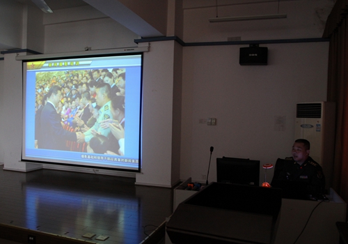 10月31日上午,军事摄影家、江西省军区九江军分区星子县人武部政委郭维虎在厚德楼303教室,为我校2015年全校新闻传播业务培训班学员作“新闻报道摄影技术与技法”专题讲座。