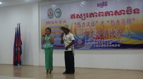 参加决赛的6名选手全部来自孔子学院亚欧大学中文系,是从64名选手中通过预赛遴选出6位选手参加本次决赛。比赛分为四个环节:命题演讲、提问、即兴演讲和抢答。选手们用自己所学的知识进行中文演讲,内容和柬埔寨文化、地貌及中柬两国友谊相结合。在演讲结束后,即席回答评委们的提问,并且通过评委计分、群众投票等方式结出胜负。