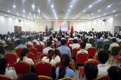11月3日,柬埔寨王家研究院孔子学院“魅力高棉”中文演讲比赛在柬埔寨亚欧大学金色大楼13楼多功能厅举行,本次活动是孔子学院汉语风采大赛系列活动之一,中国工商银行金边支行给予本次活动以奖品支持。柬埔寨王家研究院孔子学院院长谢莫尼勒阁下(Chea Munyrith)、中方院长帅式毅先生、亚欧大学校长谢索皮(Chea Sopheap)博士、中国工商银行金边支行综合部主管罗成先生及亚欧大学师生400余人观看了比赛。