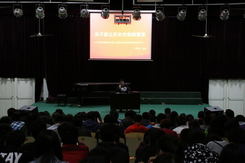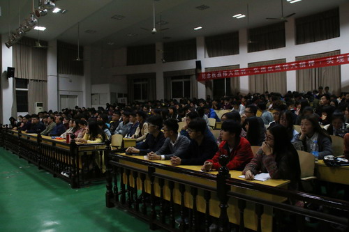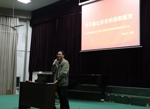 沈杨副书记在总结时说:邓著之教授用了90分钟的时间为我们作了一场很好的报告。邓教授的报告论证严密,史料详实,条理清晰,逻辑性强,大量的统计数字和历史资料,告诫我们一定要铭记历史,以史为鉴,警钟长鸣,发奋图强,加倍珍惜来之不易的和平生活,继承和发扬伟大的抗战精神,努力学好本领、树立远大理想、投身社会实践、勇于担当社会责任,绝不能让历史的悲剧重演,为实现中华民族伟大复兴的“中国梦”而奋斗。