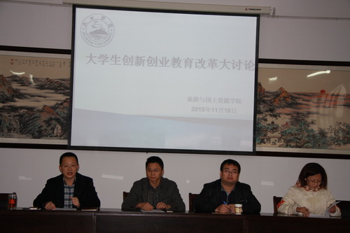 关于创新创业教育改革讨论会议精神,11月18日下午,旅游与国土资源在厚德楼415会议室召开大学生创新创业教育改革讨论会。讨论会由黄伟书记主持,校团委闫来英书记,旅游与国土资源学院全体教职工、本专科学生代表参加了本次讨论会。