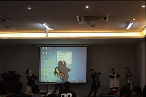 讲座期间,周老师介绍了越剧的起源、历史发展,并从越剧的主要表演特征、各个流派、板式进行解说,通过视频展示、形体示范、唱腔示范等为学生介绍各剧种演剧风格的区别。周艳老师就越剧的身段、走步对同学们进行了教学指导。老师和学生分别向周艳老师提出了关于越剧的唱法、注意点方面的问题,并向周艳老师表演了黄梅戏、京剧、民歌小组唱等节目。最后,周艳老师和全体老师同学拍照留念。