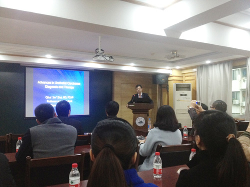 11月18日下午,美国梅奥医学中心检验科及病理系教授翟启辉博士应邀来临床医学院/附属医院讲学。胡志坚副院长,科教科曾泉科长及病理科、泌尿外科和肿瘤科医务人员参加讲座。