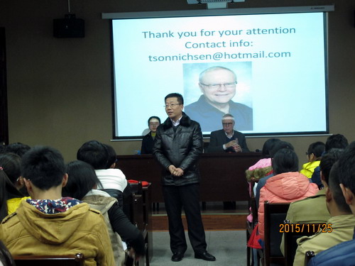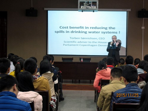 张寿廷博士后报告的主题是“中国可持续发展黄金时代,你在哪?——北欧瑞典给中国可持续发展的启示”。张博士就瑞典的环境发展情况进行了详细的分析,就中国可持续发展,能源、交通等八个方面提出了一系列可行的绿色发展模式。Torben Sønnichsen教授报告的主题是“How to avoid water spills from drinking water pipes”。Torben Sønnichsen教授就饮用水管道泄漏问题做了详细的介绍,并介绍了丹麦及北欧国家是如何处理饮用水管道的泄漏问题。