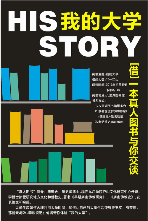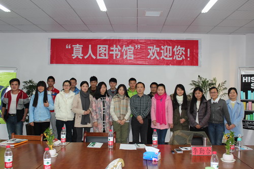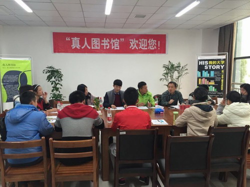 11月25日下午,一种全新阅读模式“真人图书馆”在我校图书馆八里湖分馆开启。来自我校庐山文化研究中心的李勤合博士作为我馆第一本“真人图书”与来自政法、体育学院的18名学生读者围桌而坐,畅谈“我的大学”。