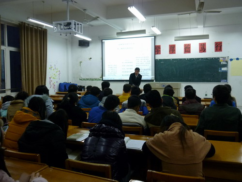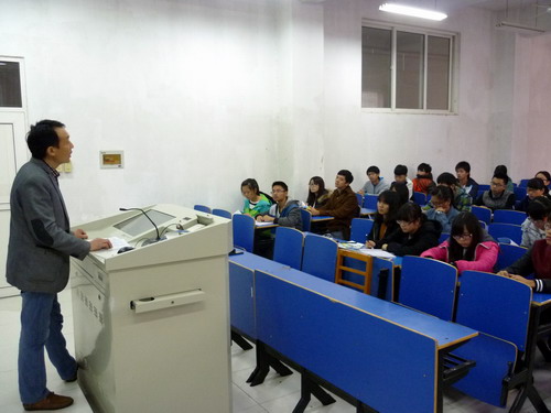 当天晚上,九江市红十字会钱逢鑫、黄哲平老师分别在文理报告厅、文友楼317室介绍了院前急救的最新知识,强调了大学生在生活中掌握急救方法的重要性,还就创伤出血、中暑、溺水、电击、意外伤害等常见急症的急救措施和要领做了详细讲解。并在现场演示了如何判断患者意识、心跳骤停需要掌握的方法及徒手心肺复苏的示范动作,并就国内外心肺复苏的一些新观点和新知识做了简明扼要介绍,他们深入浅出、诙谐幽默的讲述让同学们听得十分投入。