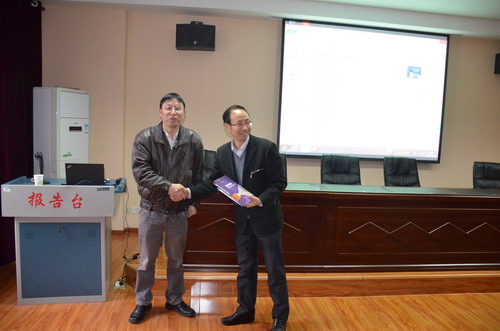 讲座结束,訚教授与大家进行了交流,表示欢迎同学们报考同济大学研究生。最后訚教授展示了自己撰写的两本专著,并表示赠送给学校图书馆。