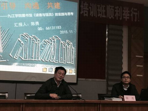 会上,我校图书馆陈勇同志也代表 图书馆,就我校图书馆阅读推广工作实践跟与会者进行了交流分享。江西省高校图书情报工作委员会充分肯定了我馆阅读推广工作取得的成绩。这次交流培训活动,极大地启发了我校图书馆馆员开展阅读推广活动的创意,为我校图书馆下一步的推广和服务工作奠定了基础。