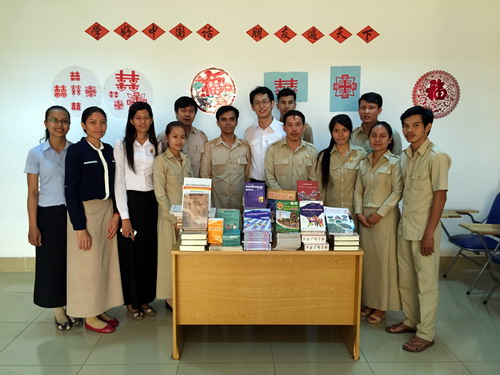 12月2日,柬埔寨王家研究院孔子学院向柬埔寨参议院赠送中文图书。参议院秘书局人力资源部主任诺昆(Nop Kuch)先生、参议院秘书局人力资源部培训办公室负责人索提尔(Kim Sokthear)先生出席了此次活动。柬埔寨王家研究院孔子学院公派教师张文锋老师代表孔子学院院长谢莫尼勒阁下(HE Chea Munyrith)向诺昆主任赠送了书籍。