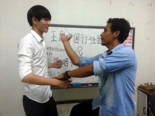在教授中国少数民族歌曲《在那遥远的地方》时,王虎说到,中文歌曲不仅让他爱上了中国传统民歌,也让他更加努力地学习中文的吐字发音。他在3次赴华之旅中,凭借演唱中文歌曲,他受到各方媒体关注,不仅让更多的中国人认识了柬埔寨和柬埔寨的孔子学院,也让自己接触到了优秀的中国人。