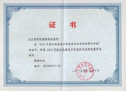 近日,在江西省信息年会上,临床医学院/附属医院荣获“2015年度江西省信息技术应用先进单位”,这是临床医学院/附属医院信息科连续4年获评该荣誉称号。临床医学院/附属医院信息科占永平科长还被授予“本年度省信息技术应用先进个人”和“优秀信息主管”荣誉,占科长是2015年度九江市唯一获此殊荣的先进个人。