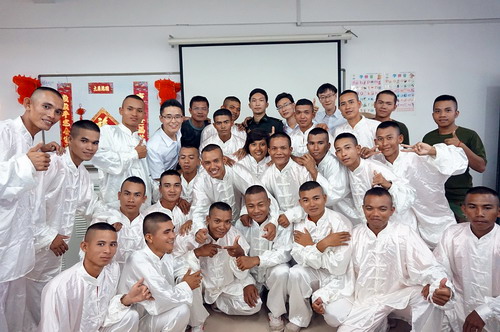 1月27日,柬埔寨王家研究院孔子学院陆军学院汉语中心成功举办“功夫贺新春”活动。陆军学院萨文(Savuth)老师,迪海风(Tyhaifen)老师,汉语中心胡帅鹏、王波涛、靳少杰三位志愿者老师出席活动,与陆军学院30多名武术班学生一起联欢。