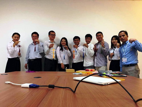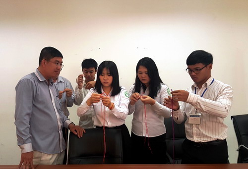 柬埔寨孔子学院总理府汉语学员体验“中国结”文化