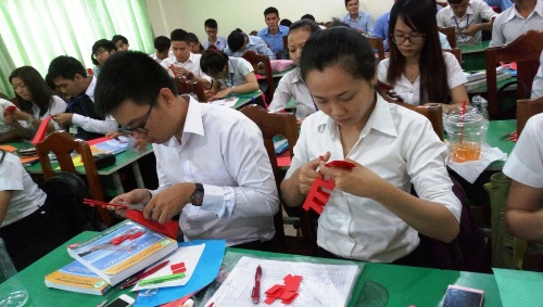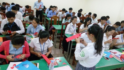 3月4日下午,柬埔寨王家研究院孔子学院金边国际大学汉语中心举办中国剪纸艺术体验活动,活动由 选派的汉语教师志愿者符素梅组织。