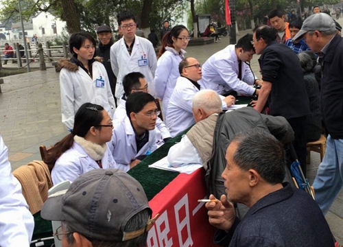 3月20日上午,临床医学院/附属医院呼吸二科医护人员走上街头,在烟水亭广场开展“呼吸睡眠障碍,提前干预”主题义诊活动,旨在唤起公众对“睡眠呼吸暂停综合征”这种疾病的重视,普及防治知识。