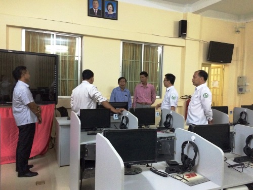 会后,在谢莫尼勒阁下和中方院长帅式毅陪同下,校长们参观了孔子学院电子图书馆及孔子学院大楼改造工地。帅式毅院长介绍说,孔子学院学生在柬埔寨也能共享中方承办院校