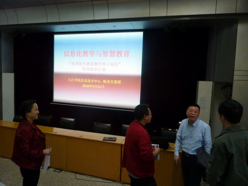 听完梅龙宝教授的讲座,参加培训的全体教师感觉大开眼界,受益匪浅,大家一致认为通过智慧教育可以充分调动学生的学习积极性,提高自主学习的能力。讲座结束后,部分教师还与梅教授就实际教学过程中存在的一些疑问进行了深入的探讨,并希望在今后的实际教学过程当中,得到梅教授的指导。