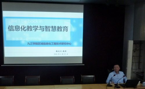 4月21日下午,根据在岗培训计划,学院邀请了 区域信息化工程技术研究中心的梅龙宝教授为全院教师讲授了《信息化教学与智慧教育》。梅教授首先介绍了时下流行的一些信息化教学的方法和手段,如慕课、翻转课堂、可汗大学等,利用实例和图片详细展示了这些教学方法的优越性。随后,根据现代信息化教学前沿热点,为全院教师阐述了今后教育教学的发展趋势——智慧教育,并通过视频短片演示了智慧教育的全过程。
