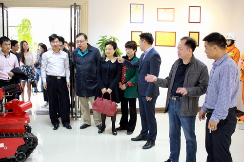 随后,调研小组来到江西瑞斯科救援科技有限公司,董事长刘剑、总经理王青泉等带领大家参观了公司研发的机器人、无人机及消防装备等,并在公司会议室举行了座谈会。会上,科研处副处长宋士华主持座谈会并介绍了此行的目的,强调旨在为创业师生和校友企业之间牵线搭桥,希望创业成功的校友能够为园区的小微企业初期遇到的瓶颈问题提供指导与帮助,同时校友企业加强与学校的联系与合作,实现双赢。公司负责人介绍了产品研发、技术需求等情况,希望在三维图像研发、大数据开发、消防培训等方面能够得到 的支持与帮助,与学校开展深入合作。学生企业九江馨媒影视有限公司法人、文传学院大三学生胡守振等希望得到学兄企业的关心帮助,促使自己刚起步的企业发展壮大。