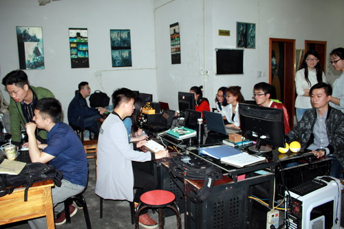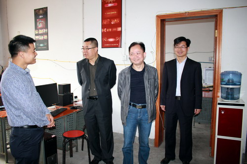 调研小组一行首先来到九江飞凡传媒有限公司,董事长王强介绍了公司涵盖的业务范围、技术开发、员工情况及企业的软硬件设施等,并带领大家实地参观了公司办公场所及运营模式。