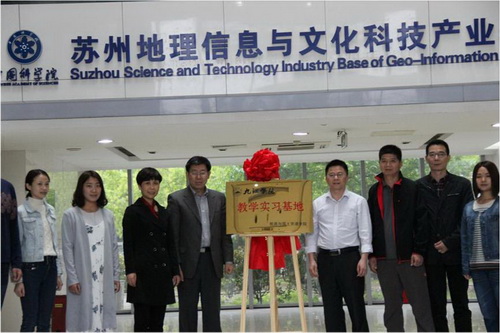 会谈后,周院士代表中科院苏州地理信息与文化科技产业基地与李松志院长为学生实习基地的揭牌。