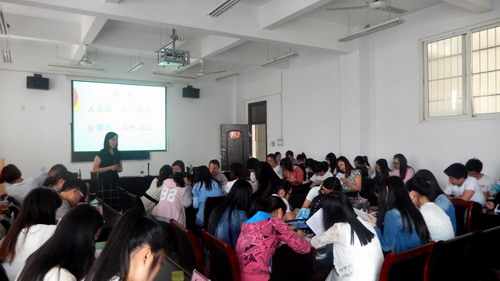 讲座开始,涂俊珂副校长做了一个关于联想记忆和抄写记忆的小游戏,通过游戏告诉同学们基础知识,基本经验,以及从“二基”到“四基”,数学问题常用的讨论,思维和延伸,接着就“专家对数学活动经验的理解”、“经验活动就一定能积累经验吗?”、“三个经典案例的讨论和分析”和“双峰小学的实际案例分析”四个方面引发同学们的热烈的讨论,从而使同学们收获有效的教学经验。