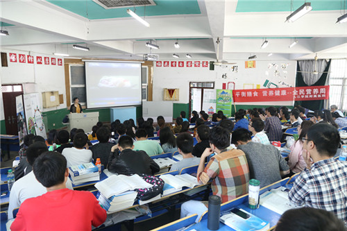 5月16日,“全民营养周”活动首先走进校园,临床营养科夏小蓉主任医师在一教122教室开展“天天好营养 一生享健康”专题讲座,为同学们详细讲解营养健康知识树立营养健康理念。
