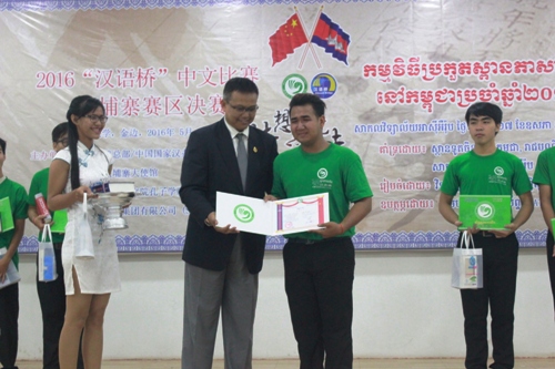 2016第十五届“汉语桥”世界中学生中文比赛柬埔寨赛区决赛5月27日在柬埔寨首都金边亚欧大学举行并圆满落幕,大赛由孔子学院总部/ 中国国家汉办、中国驻柬埔寨大使馆主办,柬埔寨王家研究院孔子学院具体承办。