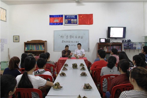 讲座后,大家一起品尝各种风味的粽子,边品尝边讨论端午节的各种文化活动,学生们都觉得这些文化活动有很深的底蕴,值得传承和发扬。学生赵雨说:“我要好好学汉语,了解更多的中国文化。从而让柬埔寨更加了解中国,也让中国人更加了解柬埔寨。为中柬两国的交往贡献一份微薄的力量。”他的话道出了很多学生的心声。“粽”香飘在柬国,把两国人民的心紧紧包围起来,越靠越近。(杨芬芬)