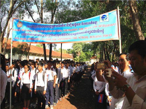 6月5日,中国和平发展基金会俞小萱副秘书长率团莅临柬埔寨王家研究院孔子学院吴哥高中孔子课堂参观访问。期间,与柬埔寨教育青年体育部国务秘书皮查南阁下(PIT Chamnan)一行共同出席了中国和平发展基金会援建吴哥高中新教学大楼项目的揭牌仪式。