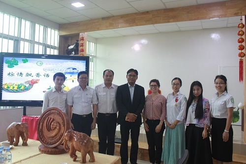 中方院长帅式毅对代表团的到来表示欢迎。他从屈原投江的故事讲起,解说了端午节的由来及端午节的相关习俗。他指出端午节,充盈着先人对自然的尊崇和对时令的敬畏,但端午节不是“棕子节”,更重要的是传递中国的文人气节及深厚的爱国情怀。他指出,中国的传统节日丰富,且风俗习惯多样,正是中国文化多元的体现。