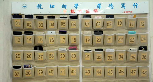 四是严抓课堂教学秩序。每天早上,在望庐楼,辅导员带队,学生干部执勤,对上课迟到及带早餐进教室的情况进行检查。副院长陈国锋牵头,组织教务科、学生科及教学信息站成员对到课率进行检查。检查结果每周通报一次,为班级考核、任课教师考核提供依据。此外,针对上课日益严重的低头族,我院组织开展了“看黑板、听讲课、拒绝做‘屏奴’”主题教育活动。学院在望庐楼教室安装了80个手机收纳袋。