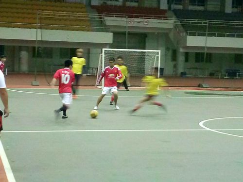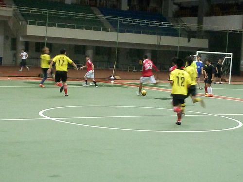 6月15日晚,在主校区北区田径馆室内足球场,随着主裁判的一声哨响,我校足球文化节五人制足球赛开赛了。