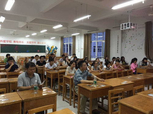6月22日,江西省2016年教师招聘考试出笔试成绩并确定入围面试名单,理A1211、B1311两个师范专业班级共48人报考,38人入围面试环节,理学院领导高度重视面试工作。6月26日晚,特邀请九江市田家炳中学邹盛检老师,九江市金安高级中学江样明老师(原理A1011班学生),庐山区五里小学沈美琪老师(原理B1111班学生)在文友楼317为入围面试的同学做辅导讲座,理学院院长周金贵到场聆听,讲座由理学院师范团队付柳林老师主持。