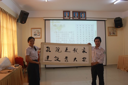 6月25日,柬埔寨王家研究院孔子学院举办了中国书法为主题的文化讲座。公派教师孙海瑞为孔院师生介绍了中国书法的起源、字体演变、书写工具及书法大家,学生们对中国书法产生了浓厚的兴趣,并饶有趣味的进行学习。