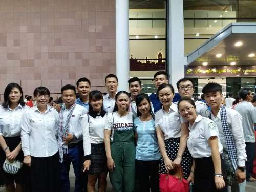 9月7日晚,柬埔寨王家研究院孔子学院公派教师邢慧莹、刘朝霞、付蕊等在金边国际机场欢送赴中国江西